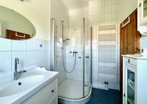 Moderne Tageslicht-Duschbäder im Erdgeschoss und im Obergeschoss, Gäste-WC im Dachgeschoss