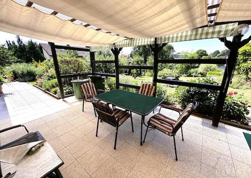 Ein großer, gepflegter Garten, eine sonnige Terrasse und lichtdurchflutete Räume sorgen für eine einladende Wohnatmosphäre. Die moderne Solartechnik mit Photovoltaikanlage, die Solarthermie und der gemütliche Holzofen im Wohnzimmer bieten zusätzliche Unabhängigkeit und tragen zur Energieeffizienz bei.