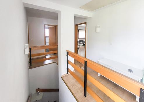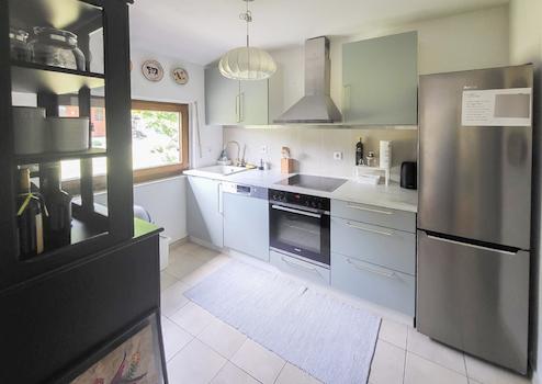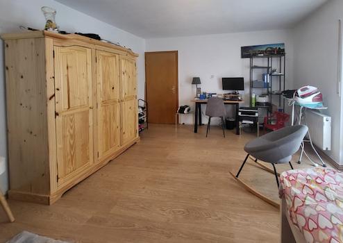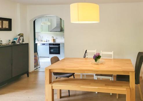 Die Wohnfläche von ca. 135 m² verteilt sich auf zwei Ebenen und bietet ausreichend Platz für Familien, Paare oder alle, die Raum zum Leben und Arbeiten suchen. Zudem gibt es einen separaten Eingang von außen zum Obergeschoss.