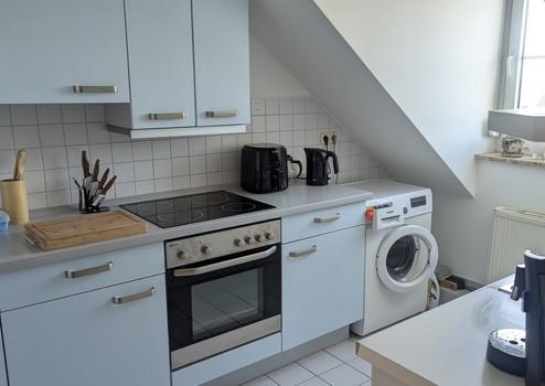 Durch die gute Grundrissaufteilung und trotz vorhandener Dachschrägen bieten sowohl das Schlafzimmer und als auch das Wohnzimmer genügend Gestaltungsmöglichkeiten. Vom Wohnzimmer hat man darüber hinaus einen schönen Weitblick. Das Bad ist mit Waschbecken, Dusche, Badewanne, WC sowie einem Handtuchheizkörper einladend und praktisch ausgestattet. Die Waschmaschine findet Platz in der Küche. Zur Wohnung gehören weiterhin ein KFZ-Außenstellplatz und ein Kellerraum. Aus unserer Sicht eignet sich die Wohnung optimal sowohl zur Kapitalanlage mit guter Mietrendite, als auch zur perspektivischen Eigennutzung. Zu diesem mit einer Gasheizung beheizten Objekt liegt uns ein bis 12.09.2027 gültiger Energieverbrauchsausweis vor. Der Verbrauch ist hier mit 91,6 kWh / (m² * a); dies entspricht der Energieeffizienzklasse C.