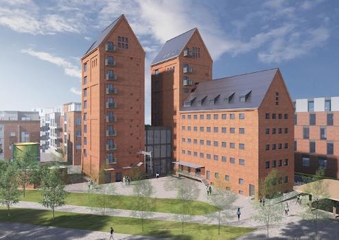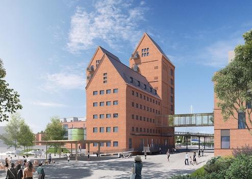 Besonders herausragend und stadtbildprägend sind hierbei die beiden Speichertürme mit dem angrenzenden Sackspeicher. Der historische und denkmalgeschützte Doppelspeicher mit seinen 40 m hohen Türmen erhebt sich gefällig über die restliche Hafenbebauung hinaus . Die Architektur erinnert zusammen mit dem angrenzenden Sackspeicher an einen klassischen Dombau mit 2 Türmen und einem Kirchenschiff. Diese Gegebenheiten inspirierten zu einer ungewöhnlichen Nutzung der historischen Gebäude und bieten ein exklusives Zuhause für alle, die das ganz Besondere lieben.