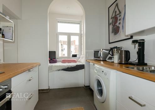 Das gepflegte Mehrfamilienhaus steht auf einem 204 m² großen Grundstück in zentraler, aber dennoch ruhiger Lage. Nach der Zerstörung im zweiten Weltkrieg wurde es 1953-1955 wieder aufgebaut. Das Haus ist voll unterkellert, besteht aus vier Vollgeschossen sowie einem Speicher und beherbergt acht Wohnungen mit insgesamt ca. 450 m² Wohnfläche. Da die Immobilie fortlaufend modernisiert, instandgehalten und in großen Teilen auch kernsaniert wurde, befindet sie sich in einem sehr gepflegten Zustand und es besteht kein Renovierungsstau. Das schlägt sich auch in einem guten Energieausweis mit einem Verbrauch der Klasse B-C nieder. Ein idyllischer, gepflegter Innenhof kann von den Bewohnern gemeinsam genutzt werden. Hier befindet sich auch eine Abstellmöglichkeit für Fahrräder.