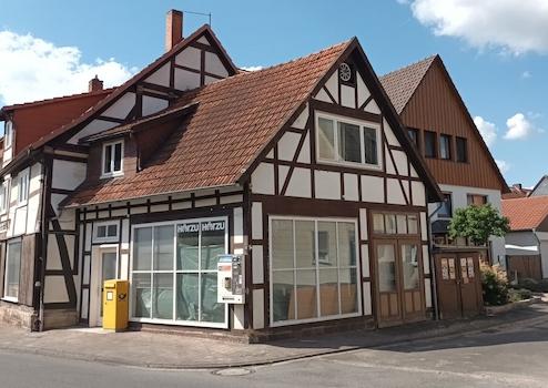 Die Immobilie teilt sich in das Wohnhaus (Baujahr 1960) links und ein Ladengeschäft (Baujahr 1733) rechts auf. Die Gewerbeeinheit umfasst ca. 56m² Ladenfläche im EG und ca. 30m² Büro im OG.