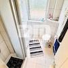 Das moderne Tageslichtbad in hellem zeitlosen Fliesendesign ist mit einer Dusche und einem Handtuchwärmer ausgestattet.