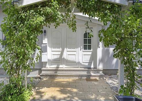 Zum Angebot gehört außerdem eine Doppelgarage mit elektrischem Tor direkt am Haus.