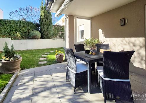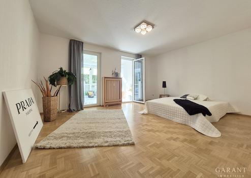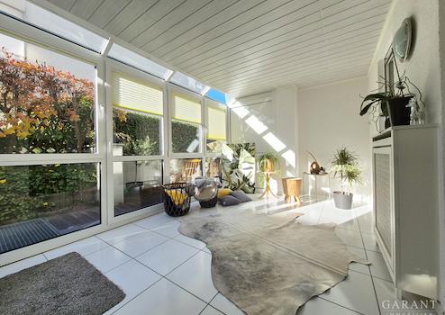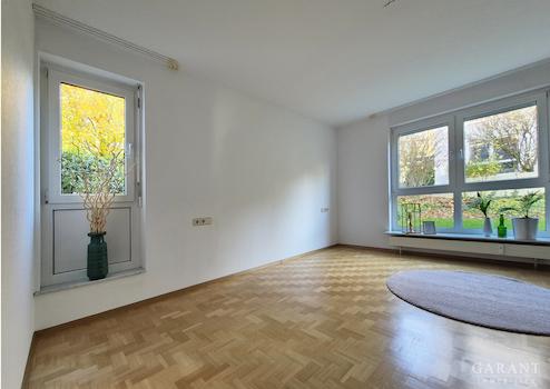 Auf beeindruckenden ca. 117 qm Wohnfläche entfaltet sich ein durchdachtes Raumkonzept mit viel Platz zum Leben, Durchatmen und Erholen vom Alltag. Diese helle, großzügige 3 Zimmer-Wohnung befindet sich im Erdgeschoss eines 1998 erbauten, gepflegten Mehrfamilienhauses mit nur 7 Wohneinheiten. Der Zugang zur Wohnung erfolgt vom Tiefgaragenstellplatz bequem über einen Aufzug oder ebenerdig über den Hauseingang. Bereits im Eingangsbereich empfängt Sie hochwertiges Echtholzparkett, das für eine warme und einladende Atmosphäre sorgt und in allen Wohnräumen verlegt wurde. Von hier gelangen Sie in das große Wohnzimmer mit bodentiefen Panoramafenstern und mit Zugang zur Südterrasse sowie zum Wintergarten. Das Schlafzimmer bietet ebenfalls Zugang zum Wintergarten und zu einer weiteren schönen Terrasse. Die Küche ist zweckmäßig eingerichtet und verfügt über einen Platz für eine Essecke. Auch von hier kann man direkt auf die Terrasse und in den Garten gelangen, was bei Grillabenden mit Freunden und Familie besonders praktisch ist. Der großzügige Garten hat an den Rändern einen schön eingewachsenen Busch und Baumbestand und ist dennoch pflegeleicht. Kinderzimmer, Tageslichtbad mit Fußbodenheizung, Badewanne und Dusche und ein separates Gäste WC runden das Raumangebot ab.