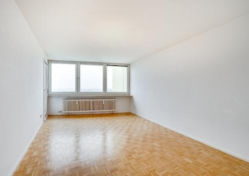 Große Fensterflächen sorgen für ein freundliches Raumgefühl und führen auf den sonnigen Südbalkon mit weitem Blick über München bis hin zu den Alpen.