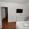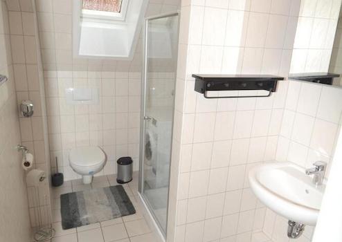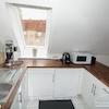 Sie besteht aus einem Wohnzimmer( mit hochwertigem Schlafsofa), einem Schlafzimmer , einem Esszimmer mit offener Einbauküche, einem Duschbad mit Waschmaschine sowie einer Dachterrasse. Sie ist modern und hell eingerichtet und verfügt auch über einen PKW- Stellplatz. Internet/WLAN vorhanden.