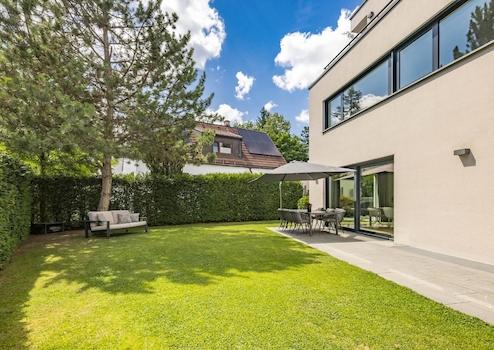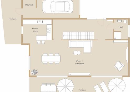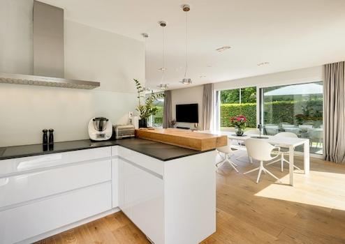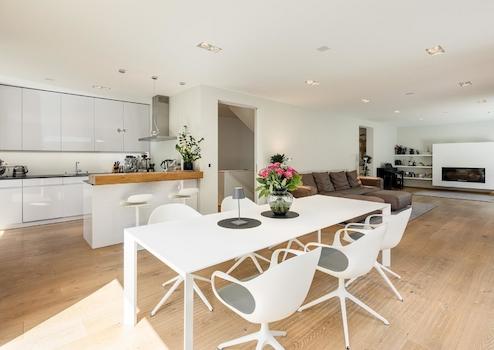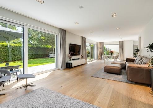 Beim Betreten der modernen Bauhaus-Villa werden Sie umgehend von der offenen und großzügigen Raumgestaltung in den Bann genommen. Der riesige, mit Tageslicht durchflutete Wohn- und Essbereich inklusive offener Küche mit Miele-Markengeräten lässt keine Wünsche für luxuriöses Wohnen offen.