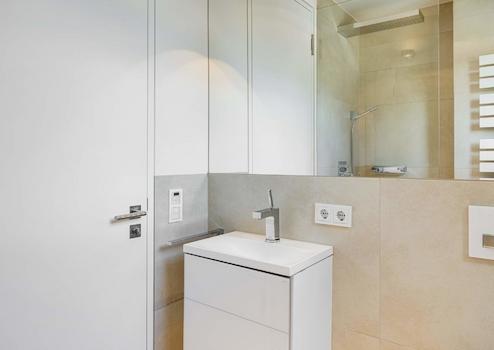 - Doppelwaschtisch KEUCO mit maßgefertigtem, wandbündigem Spiegelschrank