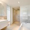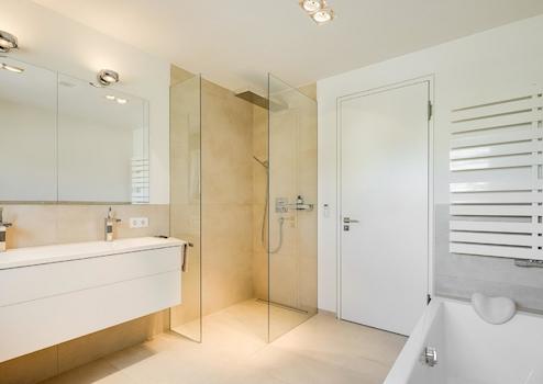 - Badewanne und bodentiefe Regendusche mit Glasabtrennung