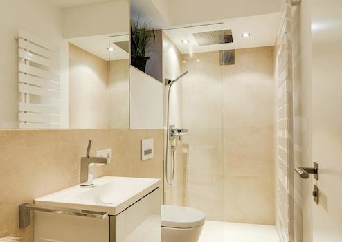 - Walk-In-Dusche mit Rain-Shower und Glasabtrennung