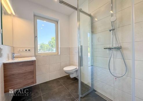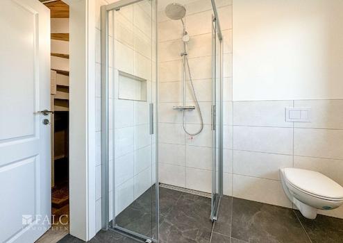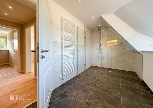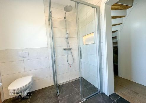 Im 1. OG finden Sie ein modern ausgestattetes Badezimmer mit einer großen Dusche, einem WC,