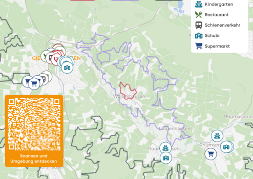 Die nahegelegene Ortschaft Gieboldehausen (nur ca. 3 km entfernt) bietet eine sehr gute Infrastruktur mit Einkaufsmöglichkeiten, Kindergärten, Schulen, Ärzten, Apotheken sowie gastronomischen und kulturellen Angeboten. Weitere städtische Zentren wie Duderstadt (ca. 12 km) und die Universitätsstadt Göttingen (ca. 25 km) sind bequem mit dem Auto oder öffentlichen Verkehrsmitteln erreichbar.