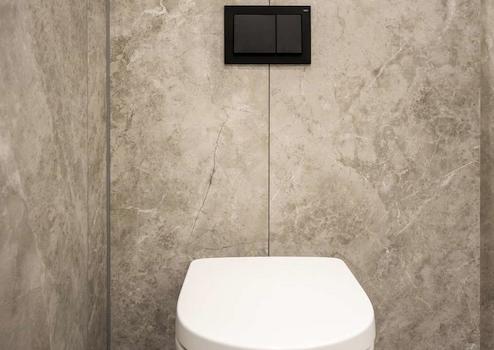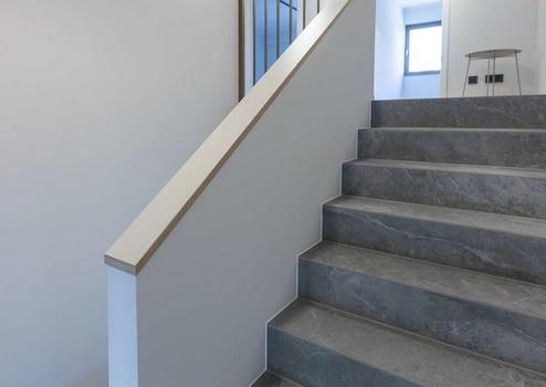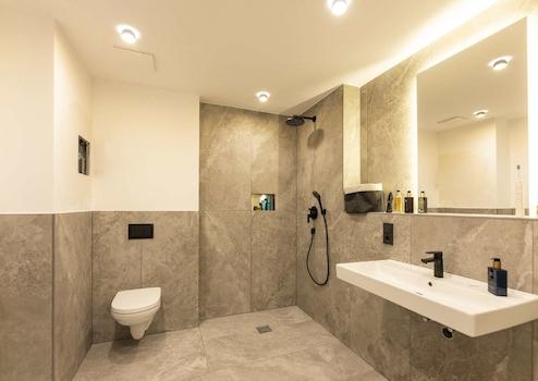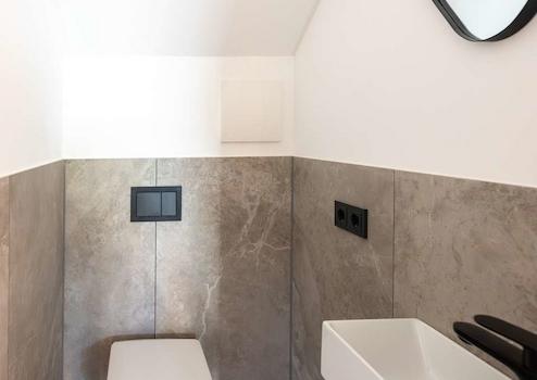 Die Ausstattung überzeugt durch ihre klare Linie: Für Wand- und Bodenflächen stehen wenige, aber sehr hochwertige Materialien zur Auswahl – stilvoll, langlebig und individuell kombinierbar. Große Fensterflächen sorgen für viel Licht und ein angenehmes Raumgefühl.