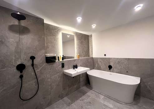 Ein besonderes Highlight: Für Wand- und Bodenbeläge können Sie aus einer kleinen, aber exklusiven Auswahl hochwertiger Materialien wählen und so die Innenausstattung ganz nach Ihren Wünschen mitgestalten – für ein Zuhause, das Ihre persönliche Handschrift trägt.