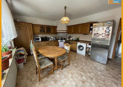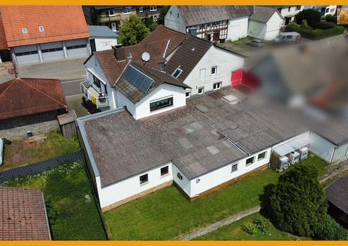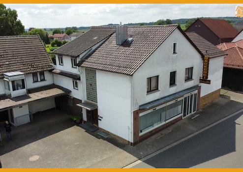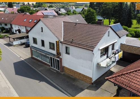 Dieses Wohn- und Geschäftshaus mit weitläufigem Garten bietet Ihnen zahlreiche Möglichkeiten. Das Hauptgebäude beherbergt im Erdgeschoss einen ehemaligen Lebensmittelladen mit Nebenraum, separatem WC sowie einen gefliesten Raum mit Starkstromanschluss. Weiterhin befindet sich auf dieser Etage eine kleine Waschküche, ein Duschbad mit WC sowie mehrere Lager und Kühlräume, die sich im angebauten, hinteren Teil befinden. Der Ladenbereich selbst kann direkt von der Straße aus betreten oder befahren werden. Im Obergeschoss befindet sich eine geräumige Wohnung. Diese Etage bietet Ihnen auf ca. 170 m² Wohnfläche insgesamt 4 Schlafzimmer in unterschiedlichen Größen sowie eine Küche mit Zugang auf den Balkon, ein großes Wohnzimmer mit Holzofen und ein Badezimmer mit Dusche und Wanne im Stile der 80er Jahre. Außerdem finden Sie hier ein Büro, welches als Durchgangszimmer zum Dachgeschoss fungiert. Das Dachgeschoss verfügt über zwei weitere Räume mit Wasseranschlüssen, die ebenfalls als Schlafzimmer genutzt werden können. Weitere Nutzräume wie Heizungsraum, Pelletlager und kleine Werkstatt finden Sie im Keller des Hauses. Besonders hervorzuheben ist der große Garten hinter dem Haus, welcher über zwei Gartenhäuser und diverse Obstbäume verfügt. Ein direkter Zugang vom Haus in den Garten ist aktuell nicht vorhanden und müsste hergestellt werden. Pkw können auf zwei Stellplätzen am Haus oder in der Doppelgarage geparkt werden.
