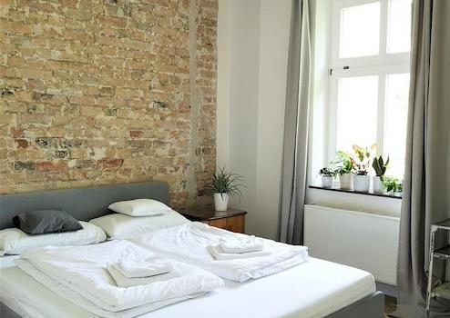 + Design Apartment mit frei gelegten Mauerwerk im Wohnzimmer