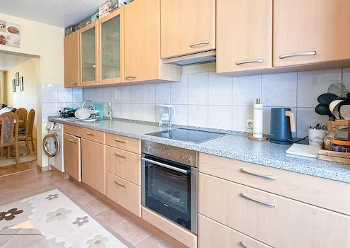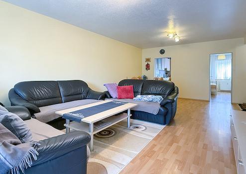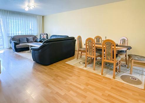 Aufteilung: Wohn- und Esszimmer (mit Balkonzugang), Elternschlafzimmer, Kinderzimmer I, Kinderzimmer II (respektive Büro), Küche, Diele, Bad, Gäste-WC