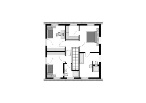 Im Obergeschoss sind ein geräumiges Familienbad, zwei schöne Kinderzimmer und ein Elternbereich mit Ankleide geplant.