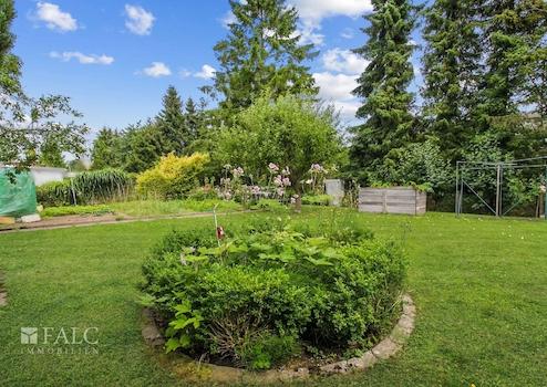 Vom Eingangsbereich aus gelangen Sie in die großzügigen Räume, welche durch große Fenster viel Tageslicht erhalten. Die Terrasse lädt dazu ein, die frische Luft zu genießen und bietet einen schönen Blick auf den gepflegten Garten, der ideal für Kinder zum Spielen oder für entspannte Stunden im Freien ist.