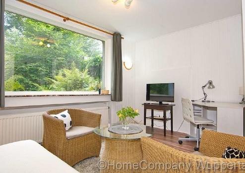 Dieses charmante Häuschen bietet dem Gast ein hell und modern möbliertes Wohn-/Schlafzimmer mit Doppelschlafsofa (1,60 x 2,05 m), Flachbild-TV, geschmackvollen Sesseln und Beistelltisch, einen hellen Arbeitsplatz, DSL-Wlan, und eine integrierte, komplett ausgestattete Kochnische mit Herd, Backofen und ausklappbarem Esstisch. Zusätzlich steht dem Gast ein gemütliches, kleines Schlafzimmer mit Einzelbett, Nachttischchen und Kleiderschrank zur Verfügung. Das freundliche Badezimmer ist mit einer Wanne mit integrierter Duschvorrichtung ausgestattet. Im Mietpreis von € 650,00 für eine Person sind alle Energie- und Nebenkosten und die Nutzung des Internet - Zugangs enthalten. Auf Wunsch kann Bettwäsche (inklusive 14tägigem Waschen dieser Bettwäsche), für € 10 pro Monat hinzugebucht werden. Ein PKW-Stellplatz im Carport kann für € 40,00 dazu gemietet werden. Vor dem Haus gibt es einen Sitzplatz für 4 Personen. Die Endreinigung zahlt der Mieter. Sie erfolgt nach Aufwand und wird mit € 35,00 pro Stunde abgerechnet.