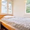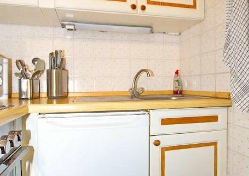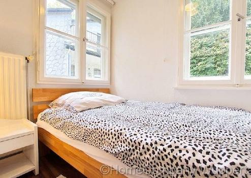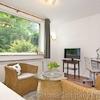 This charming little house offers guests a bright and modern furnished living/bedroom with double sofa bed (1.60 x 2.05 m), flat-screen TV, tasteful armchairs and side table, a bright workstation, DSL WiFi and an integrated, fully equipped kitchenette with stove, oven and fold-out dining table. Guests also have a cozy, small bedroom with a single bed, bedside table and closet at their disposal. The friendly bathroom is equipped with a bathtub with integrated shower. The rental price of € 650.00 for one person includes all energy and ancillary costs and the use of internet access. Bed linen (including washing every 14 days) can be added on request for € 10 per month. There is a seating area for 4 people in front of the house. The final cleaning is paid by the tenant. It is charged at € 35.00 per hour.