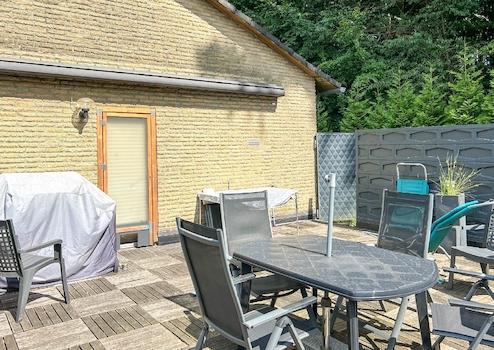 Im Erdgeschoss erwarten Sie ein Schlafzimmer, ein Kinderzimmer, eine funktionale Küche, ein modernisiertes Tageslichtbad sowie ein großzügiger Wohn-/Essbereich mit Kamin. Balkon und angrenzende West-Terrasse bieten sonnige Ausblicke in die grüne Umgebung. Eine Doppelgarage mit direktem Zugang ins Haus sowie ein zweiter Eingang mit direktem Zugang zum Wald erhöhen den Wohnkomfort.