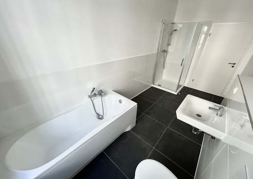 - modernes Tageslichtbad mit Dusche, Wanne und Waschmaschinenanschluss