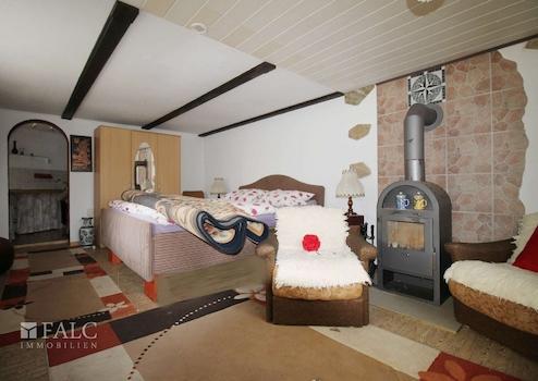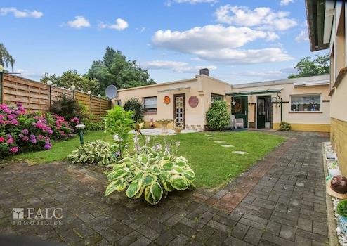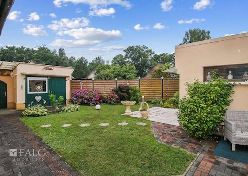 Vom Wohnzimmer aus haben Sie einen schönen Blick auf den gepflegten Garten. Der Garten selbst ist ein Highlight der Immobilie, mit einem liebevoll angelegten Innenhof, der eine Hobbyküche und eine Räucherkammer beherbergt. Ein idealer Ort für gesellige Abende im Freien mit Freunden und Familie.