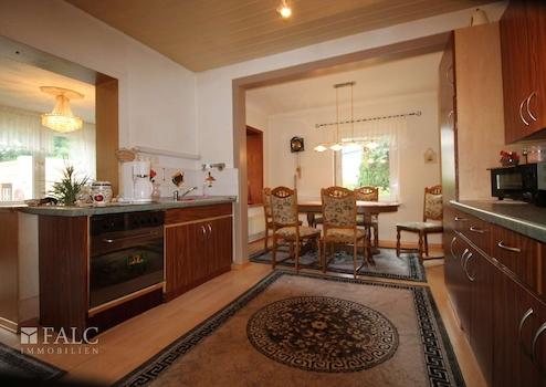 Dieses charmante Haus aus dem Jahr 1935 bietet auf ca. 105m² Wohnfläche ein behagliches und schönes Zuhause. Beim Betreten des Hauses gelangen Sie in einen einladenden Eingangsbereich, der direkt in das geräumige Wohnzimmer führt. Hier sorgt ein großes Fenster für viel Tageslicht und eine angenehme Atmosphäre. Die angrenzende Küche ist funktional gestaltet und bietet ausreichend Platz für einen Esstisch, an dem die Familie zusammenkommen kann.
