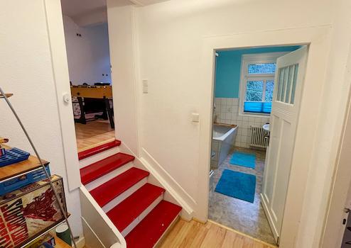 Dieses gepflegte Einfamilienhaus wurde in den 1920er-Jahren auf einem ca. 925 m² großen Grundstück errichtet und bietet direkten Zugang zur Agger. Die Wohnfläche von ca. 158 m² verteilt sich auf insgesamt sieben Zimmer und bietet vielfältige Nutzungsmöglichkeiten. Im Erdgeschoss erwartet Sie neben der einladenden Diele eine separate Küche sowie ein großzügiger Wohnbereich mit direktem Übergang zum offenen Esszimmer – ideal für gesellige Stunden mit Familie und Freunden. Im Obergeschoss befinden sich die Schlaf- und Kinderzimmer sowie zwei Badezimmer, die jeweils mit einer Badewanne ausgestattet sind. Ein zusätzliches Durchgangszimmer bietet sich optimal als Hobby- oder Arbeitsraum an. Der liebevoll angelegte Garten mit Blick auf die Agger bietet viel Potenzial für individuelle Gestaltungsideen. Weitere Stauflächen stehen Ihnen im Kellergeschoss zur Verfügung. Abgerundet wird das Angebot durch eine Garage sowie eine Gartenterrasse.