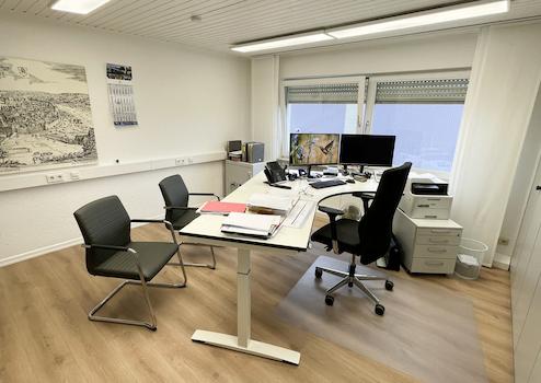 Das Hauptgebäude wurde Anfang der 80er Jahre auf einem rund 8.540 m² großen Grundstück gebaut und bietet eine großzügige Bürofläche mit Werkstatt von ca. 528 m². 1987/1988 wurde das Objekt um eine Gerätehalle für den Fuhrpark mit einer Fläche von ca. 391 m² erweitert. Die Freifläche beträgt ca. 7.621 m².