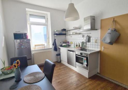 Gasetagenheizung; Kunststofffenster mit Isolierverglasung; Holztreppe; hohe Decken; die Böden sidn gefliest, teilweise Dielenböden; sehr gepflegter Zustand; Kabelanschluss, 2 Einbauküchen; die Immobilie ist derzeit für etwa 1. 300 €/Monat zzgl. NK vermietet.