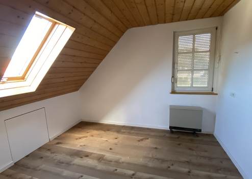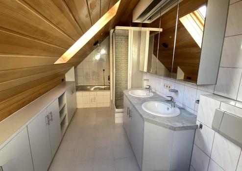 Im Obergeschoss befinden sich das Gäste-WC, die Einbauküche sowie das großzügige Wohn-/ Esszimmer mit einem schönen Balkon. Das Dachgeschoss ist komplett ausgebaut und mit drei Zimmern und einem Badezimmer ausgestattet.