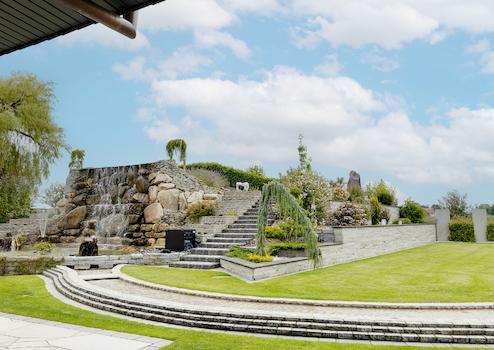 +++ hochwertig angelegter Garten mit vielen (Dach)Terrassen, Freisitzen und Spielbereichen sowie dem angelegten Teich mit Wasserspiel und Wasserfall