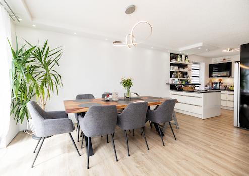 Auf rund 154 m² Wohnfläche überzeugt die Immobilie mit einer durchdachten Raumaufteilung und insgesamt fünf lichtdurchfluteten Zimmern. Ob Familienleben mit Kindern, Homeoffice oder Gäste – jedes Bedürfnis findet hier seinen Raum. Zwei moderne Badezimmer sorgen für Flexibilität und Komfort, gerade im turbulenten Alltag.