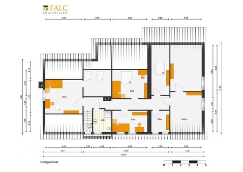 Das Dachgeschoss ist aufgeteilt in einen großen Hobbyraum und eine ebenfalls sehr helle Wohnung mit neuem Bad einer Küche, Schlafzimmer und Kinder oder Arbeitszimmer.