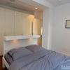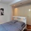 Das Schlafzimmer mit Doppelbett verfügt über einen großen Schrank.