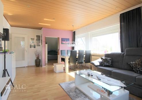 Das Wohn-/Esszimmer ist hell und großzügig. Das angrenzende Zimmer entstand nachträglich durch den Einbau einer Trockenbauwand. Somit besteht auch die Möglichkeit, das Wohn-Esszimmer noch weitläufiger zu gestalten und die Durchreiche von der Küche wieder zu nutzen. Die Küche bietet Platz für eine separate Essecke. Genießen Sie vom Eltern-Schlafzimmern den Blick in den Garten. Das Badezimmer mit Duschwanne erstrahlt in zeitloser Eleganz. Ein kleines Kinderzimmer und der Abstell- und Heizungsraum ergänzen das Raumangebot.