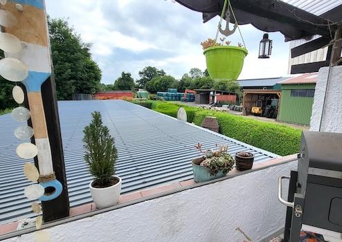 Flachdach-Gebäudeteil hat 2024 eine neue Eindeckung erhalten.