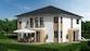 Der Hausentwurf bietet in der Architektur die moderne Interpretation einer 2-geschossigen Stadtvilla mit Walmdach. An der Rückseite sind vier bodentiefe Fenster-