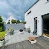 Dieses nicht alltägliche, 2009 erbaute Einfamilienhaus befindet sich in ruhiger Lage im beliebten Gütersloher Ortsteil Isselhorst. Die Immobilie überzeugt schon beim Betreten mit seinen auf 161,57 m² Wohnfläche verteiltem, offenem Raumkonzept. Das moderne, in massiver Bauweise errichtete, 1 1/2 geschossene Architektenhaus ist komplett (inkl. Keller) mit Fußbodenheizung ausgestattet. Durch den Flur, vorbei an einem geschmackvollen Gäste-WC mit ebenerdiger Dusche, gelangt man in den äußerst großzügigen und hellen Wohnbereich, aus dem man durch bodentiefe Fenster auf eine der beiden Terrassen und in den wunderschönen Garten blickt. An den offenen Essbereich schließt sich die, vom Tischler angefertigte, hochwertige Küche an, die komplett mit Miele-Geräten, unter anderem einem Dampfgarer, einem Kaffeevollautomaten, Wärmeschublade und einem Weinkühlschrank ausgestattet ist. Direkt aus der Küche tritt man auf die zweite sonnige Frühstücksterrasse, auf der sowohl die ganze Familie, als auch Gäste Platz finden. Eine breite Treppe führt in das Obergeschoss, in dem man von einer offenen Galerie mit Lese-Ecke empfangen wird. Hier befindet sich auch ein abgetrennter Bereich mit einem hellen Schlafzimmer und eigenem Bad, ausgestattet mit Badewanne, ebenerdiger Dusche und Waschtisch; angrenzend ein eigener Raum für das WC. Außerdem befinden sich im Obergeschoss zwei Kinder-bzw. Gästezimmer, die durch ein - von beiden Räumen begehbares - Duschbad mit Waschbecken und WC verbunden sind.