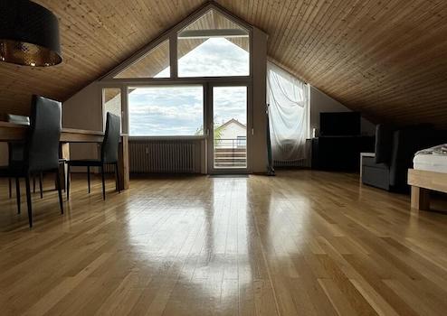 Lichtdurchflutete 1,5 Zimmer-Dachgeschoss-Wohnung mit Balkon und Alpenblick in Friedrichshafen OT.
