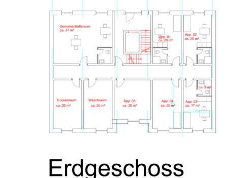 Es stehen Apartments von jeweils ca. 21 m² zur Verfügung. Die Apartments sind gemäß Auflagen der Förderung in barrierefreier Ausführung zu errichten. Ebenso sind gemäß den Vorgaben der Förderung Gemeinschaftsräume sowie Wasch- und Trockenräume vorgesehen.