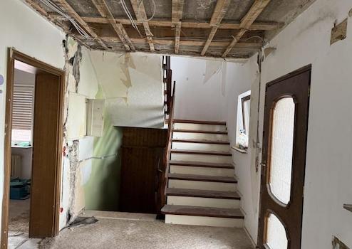 Teilrenoviertes Einfamilienhaus mit danebenliegendem Werkstattgebäude; Baujahr 1963; 2, 5 Stöckige Massivbauweise; Renovierungen sind erforderlich, teilweise bereits erfolgt; Vor- und Rückgarten; das Nebengebäude wurde lange Zeit als Werkstatt benutzt; Verwendung als Garage ist möglich, ebenso ist ein Ausbau zu einer zweiten Wohneinheit denkbar; 5 Zimmer; Küche, Diele und Bad verteilen sich im Haupthaus auf eine Wohnfläche von ca. 165m²; die Nutzfläche im Nebengebäude beträgt ca. 120m²; die Grundstücksfläche beträgt ca. 480m²;