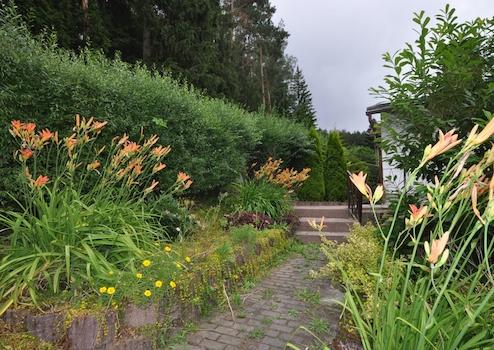 Begrünung: diverse Pflanzen, Obstbäume und Sträucher