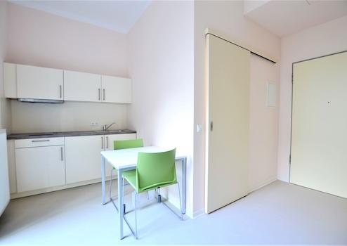Die 20 qm - 25 qm großen 1-Zimmer-Apartment sind komplett möbliert und mit einer vollwertigen Küchenzeile, Schreibtisch mit Bürostuhl, Tisch mit zwei Stühlen, Kleiderschrank, Regal und Schlafsofa (ausziehbar) ausgestattet.