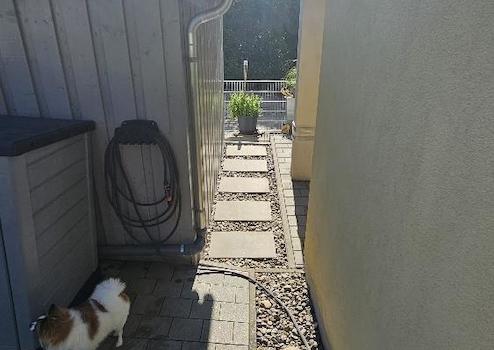 Zu der Wohnung gehören zwei Stellplätze. Die Terrasse verfügt über eine elektrische Markise die sich bis zum Zaun rausfahren lässt. Der Garten verfügt über ein Gartenhäuschen, ideal zum Verstauen von Gartengeräten etc.