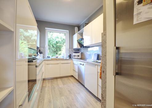 Beim Betreten des Hauses empfängt Sie ein kleiner Windfang, der in den Flur überleitet. Im Erdgeschoss befinden sich zwei Wohnräume, die durch eine elegante Schiebetür miteinander verbunden sind – perfekt für Wohn- und Essbereich. Der angrenzende Balkon wurde zu einem kleinen Wintergarten umgebaut. Die moderne Einbauküche aus dem Jahr 2021 ist funktional und stilvoll zugleich. Ein Gäste-WC rundet das Raumangebot auf dieser Ebene ab.